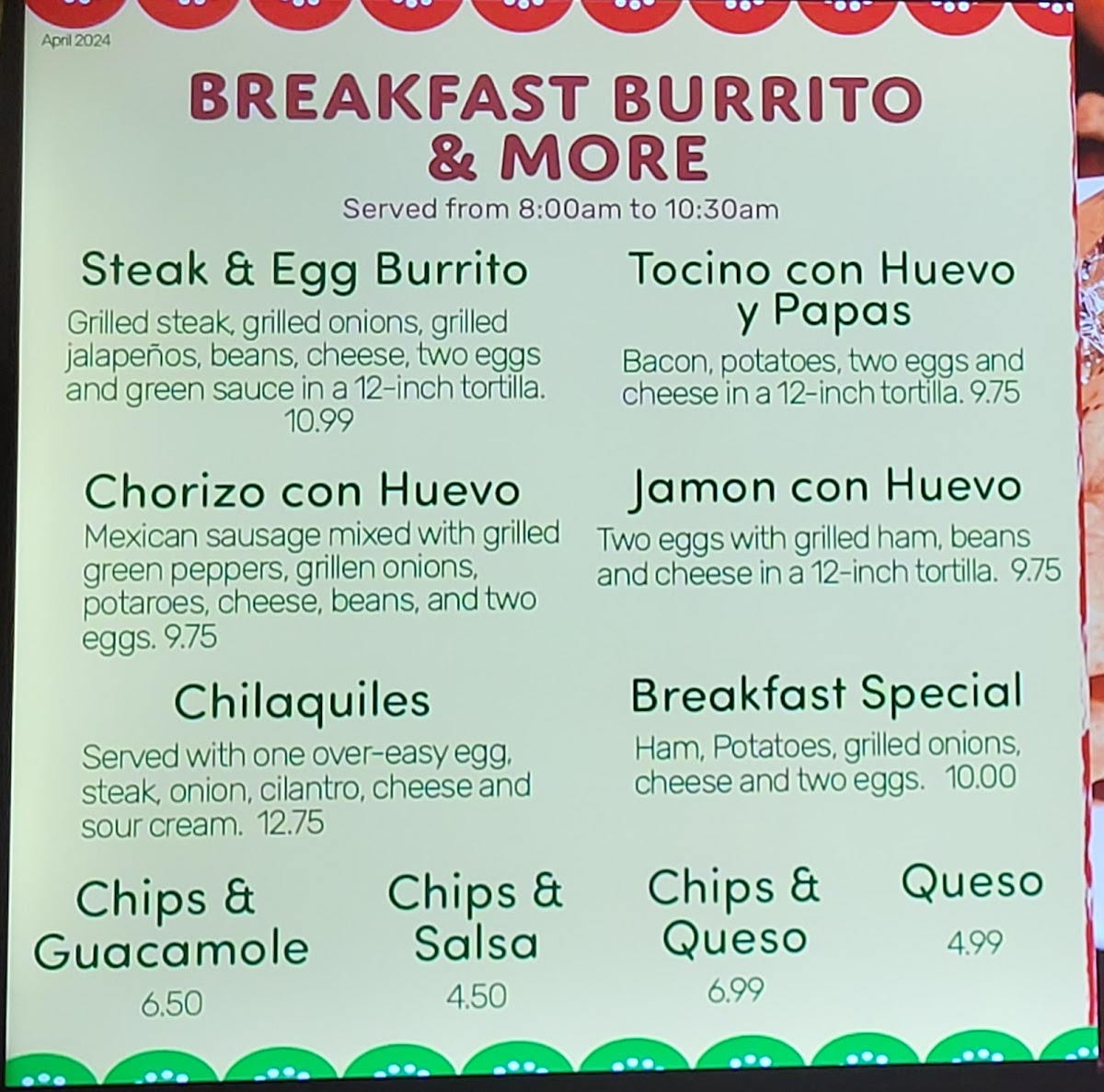 Breakfast Menu - Breakfast Burrito & Breakfast