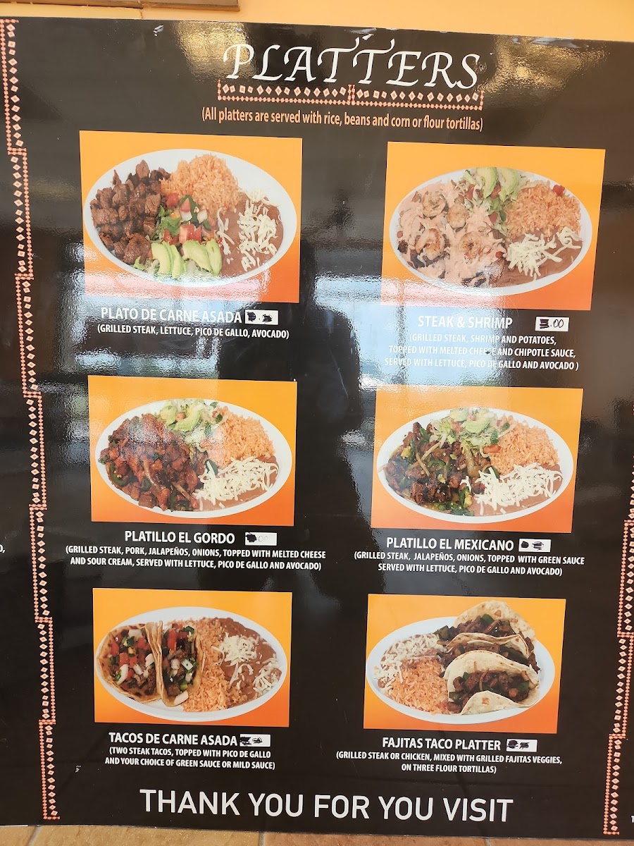 griled steak,mix with grill bell peppers,onions,served with rice , beans,lettuce, pico de gallo, avocado and a choice of corn or flour tortillas
